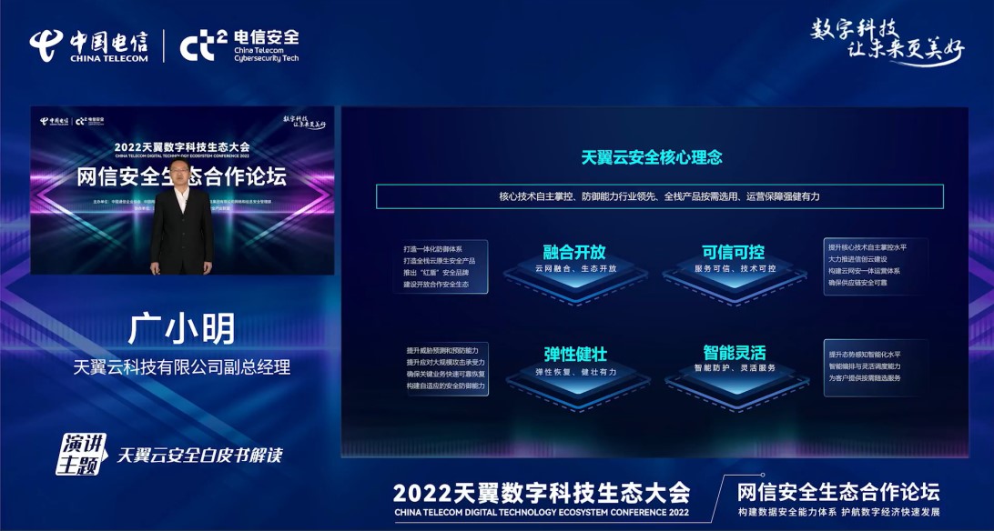 天翼云科技有限公司副总经理广小明对《天翼云安全白皮书》进行解读。