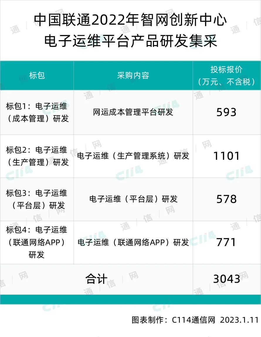 中国联通智网创新中心电子运维平台产品研发集采:联通数字科技、公众、普元三家入围