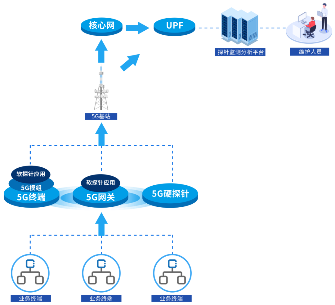 5G专网质量终端探针SDK可实现网络质量、业务质量、随流等方面检测,具备数据采集、日志采集、本地数据缓存和探针管理等功能。