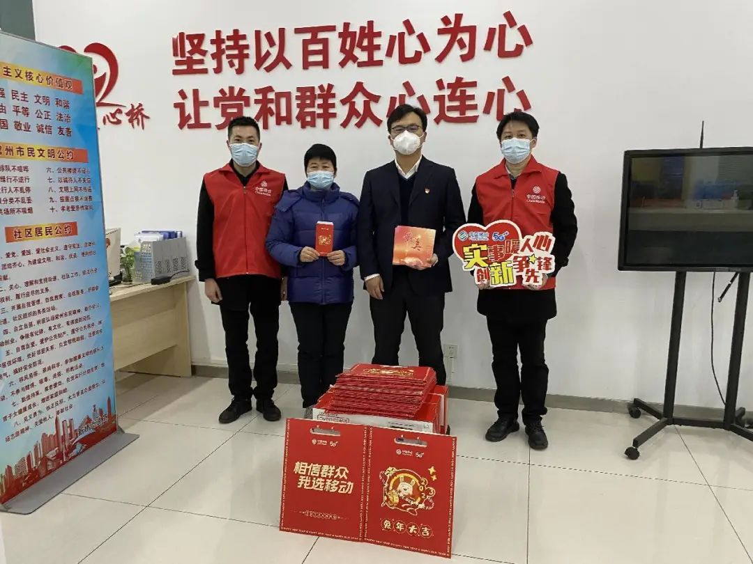 在新北区新桥镇道乡社区,常州移动志愿者跟随社区贾书记一起慰问困难家庭,并送上口罩、保温盒等生活必需品,以及常州移动特色“福袋”,传递节日的祝福和温暖。常州移动志愿者已连续两年向社区困难家庭伸出援助之手。2022年,志愿者们结合自身专业所长,多次上门,为困难家庭提供移动业务受理、网络与电视调试、智能手机辅导等一对一帮扶,帮助他们足不出户解决信息化需求。在疫情防控期间,志愿者们也协助社区工作人员,给困难居民提供了诸多生活便利。