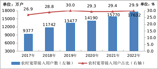 图 2017—2022年农村宽带接入用户及占比情况