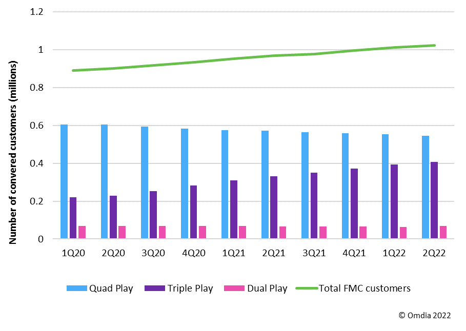 图2:Proximus Belgium融合客户,2020年第一季度至2022年第二季度。(百万户)