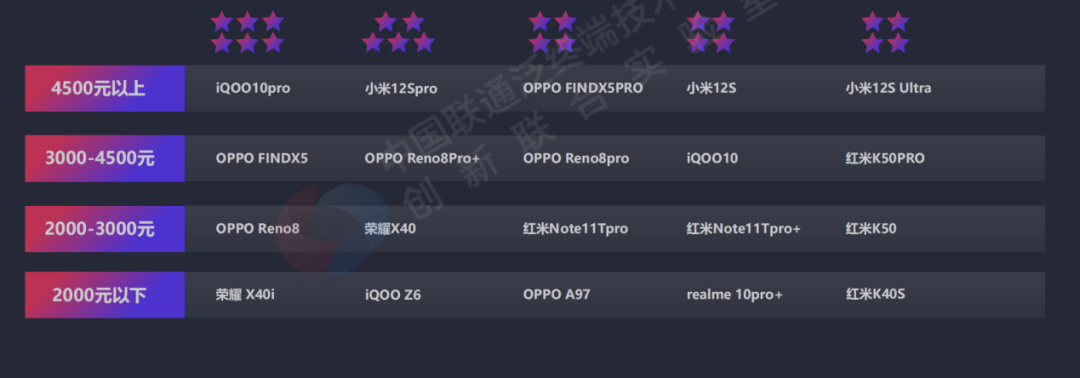 合理的定价+良好的用户体验是决定一款手机产品手机能否热销的关键,本轮评测中,中国联通分4个价位段,两种手机形态选取33款传统手机和3款折叠屏手机进行评测,用消费者的视角,同产业链合作伙伴共同开展端网协同的用户体验优化,共同为消费者提供优质的5G产品和服务。