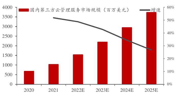 图3 国内第三方云管理服务(MSP)市场规模及增速