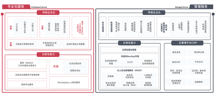 当前阶段,我国云服务市场正发生巨大变化。一方面,随着我国企业和政府数字化转型的深入,云管理服务需求由互联网企业进一步向制造业企业和公共服务领域拓展,市场需求激增且更加复杂多样。另一方面,云管理服务(MSP)与云管理平台(CMP)、云原生等进一步融合,云管理服务向平台化、智慧化方向迈进。在此背景下,国内典型云MSP厂商纷纷强化布局、加大技术研发投入、推进生态整合,抢占云管理服务市场。