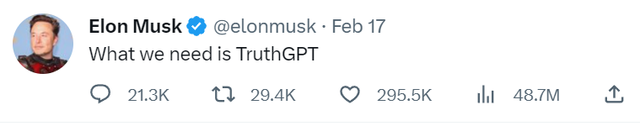 OpenAI最初是作为一家开源(这就是我把它命名为“Open”AI的原因)的非营利性公司而创办的,其目的是为了抗衡谷歌(94.59, -1.19, -1.24%),但现在它已变成一家闭源的营利性公司,被微软(258.06, -4.09, -1.56%)有效控制。