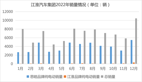 终端数据显示,江淮2022年乘用车销量仅8.41万辆,其中新能源乘用车销量为4.86万辆,后者大部分销量来自思皓品牌。