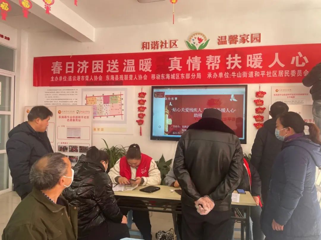在3月5日“雷锋纪念日”到来之际,连云港东海移动东部分局与东海残联联合在和平社区开展主题为“春日济困送温暖、真情帮扶暖人心”主题活动。