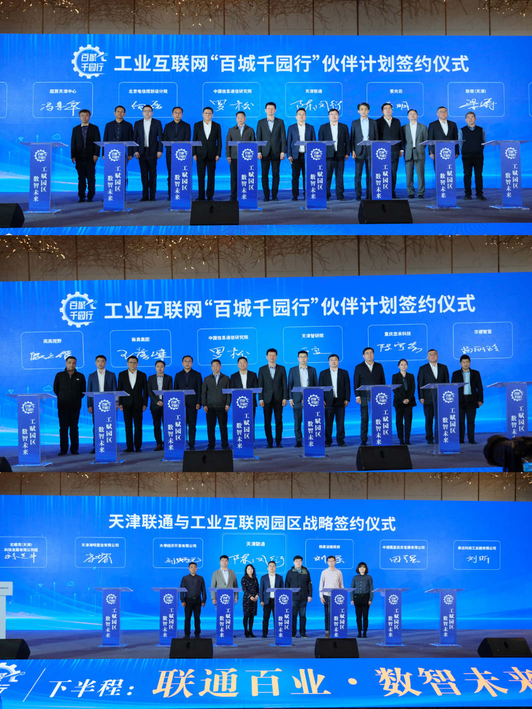 会上,天津联通与滨海物流加工区、大港工业区、中塘工业区、滨海信息安全产业园、泰达服务外包产业园、滨海中关村科技园等滨海新区6家园区举行首批工业互联网园区合作战略签约仪式,共同推进“网络、标识、平台、安全、资源、应用”全要素进园区,在智慧园区运营、企业组网、5G创新应用、上云上平台、标识解析等方面开展合作,携手打造工业互联网标杆示范园区,下一步将在依托本次活动,在全市范围内开展园区供需对接,全面落实天津市政府与中国联通战略合作协议,助力天津市智能制造产业发展。