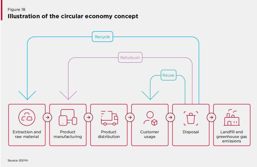 在整个电信生态系统中,可持续性已经超越了企业的社会责任,成为核心战略重点。行业参与者越来越多地采用一种生产、服务提供和消费的模式,包括尽可能长时间地共享、租赁、再利用、修理、翻新和回收现有材料和产品。这种循环经济方法对于网络以更可持续和节能的方式运营以及对移动行业在实现其气候目标方面取得进展非常重要。