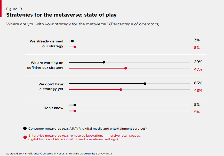 随着5G、人工智能和可穿戴设备等支持技术的进步,元宇宙的发展势头持续增强。主要利益相关者和生态系统参与者的兴趣日益增长,导致了推动元宇宙发展的重要构建模块的出现,特别是内容和应用程序、标准和设备,这些将成为2023年市场发展的重点活动。除了连接之外,元宇宙还为运营商带来了新的收入来源,强调需要创新和合作以确定用例和网络要求。