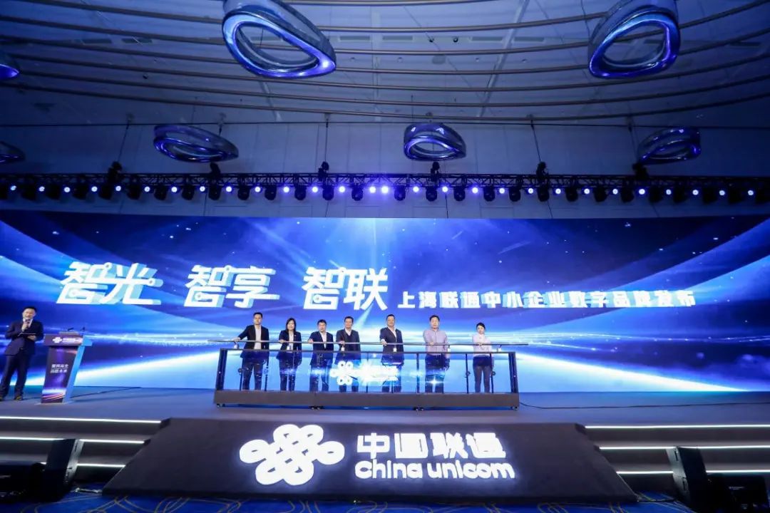 大会现场,上海联通联合上海市经信委中小企业办、深信服、浙江大华、鼎捷软件、智能云科等数字化服务合作伙伴共同发布“智光、智联、智享”上海联通中小企业数字化品牌。