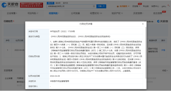 首先从处罚层面,天眼查显示,土坑酸菜涉事企业累计已被罚近千万。其中,被央视点名的湖南插旗菜业有限公司及相关责任人因土坑酸菜事件共被处罚548.8万,在缴清罚款及验收合格后,于2022年4月下旬开始恢复生产。然而近日,湖南插旗菜业有限公司投资成立了新公司,名为湖南旗圣农业发展有限公司,股东信息显示,插旗菜业持有该公司51%股份,为大股东,另一股东为河南省新圣地实业发展股份有限公司,持股49%。