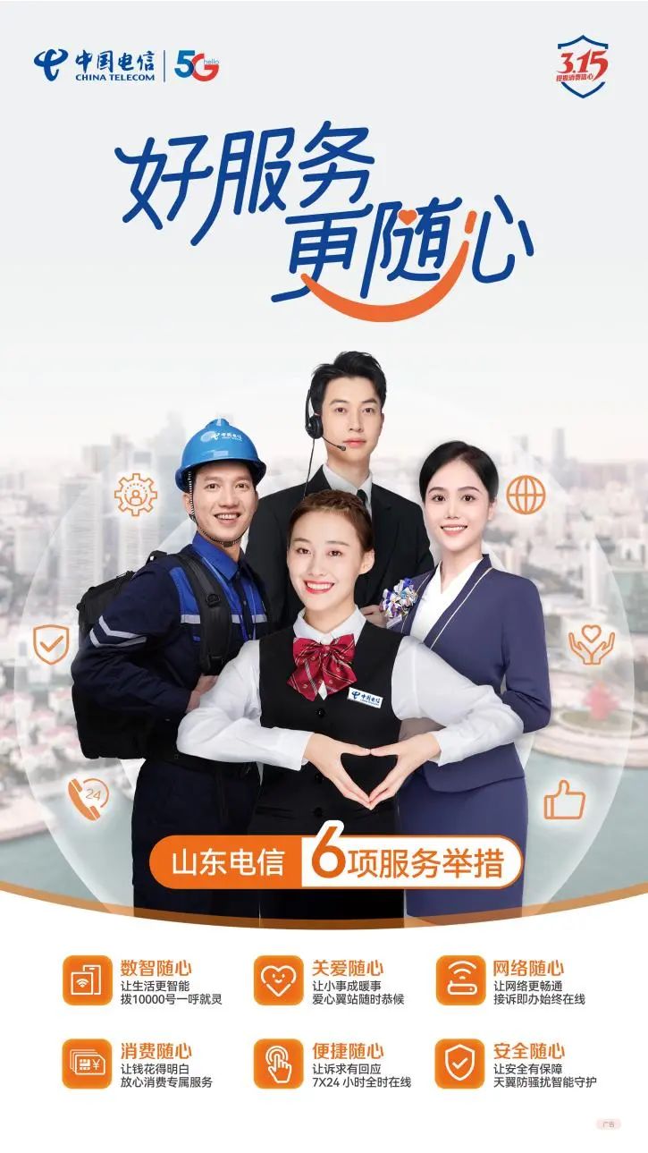 数智随心、关爱随心、网络随心、消费随心、便捷随心、安全随心,山东电信深化推进“好服务更随心”六大服务举措,实施“客户说了算”评价机制,为赢得客户良好感知不断提质加码,书写满意服务新答卷。