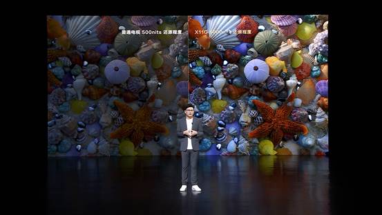 此次推出的TCL X11G,实现了行业最高的5184背光分区。电视分区越多,越能够精细地控制背光区域的明灭,从而使得画面明暗层次更加分明,带来更优异的画质体验。目前,行业轻旗舰级电视处于数百级背光分区级别,而分区数达到2000级,综合画质已经超越了OLED的水平。TCL X11G分区数量前所未有的达到5000+级,以点光源代替面光源,画面更通透,同时细节拉满,足以定义典藏级的影像水准。