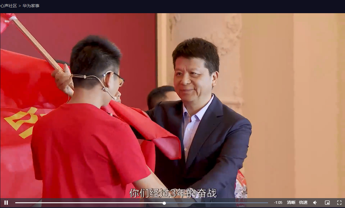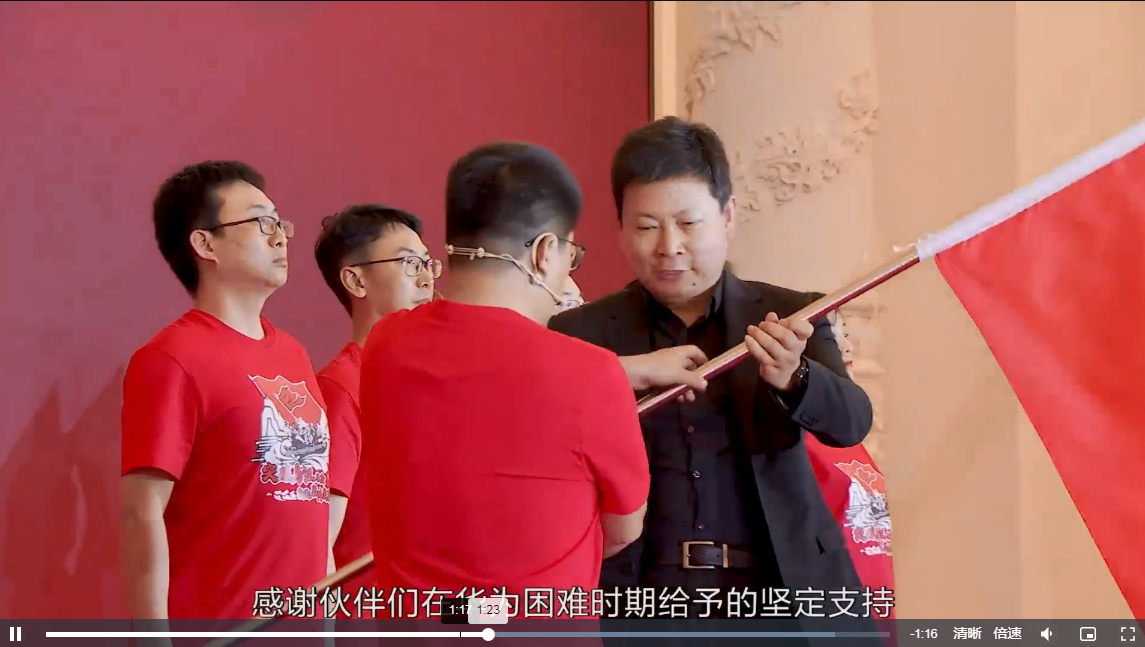3月21日,华为官方论坛心声社区发布了一则视频,内容是华为公司在深圳华为坂田基地举行的“突破乌江天险 实现战略突围——产品研发工具阶段总结与表彰会”。视频显示,包括创始人任正非、副董事长兼轮值董事长孟晚舟、常务董事余承东在内的华为高管全员出席了这次表彰会,并为产品研发工具团队颁奖以及授旗。