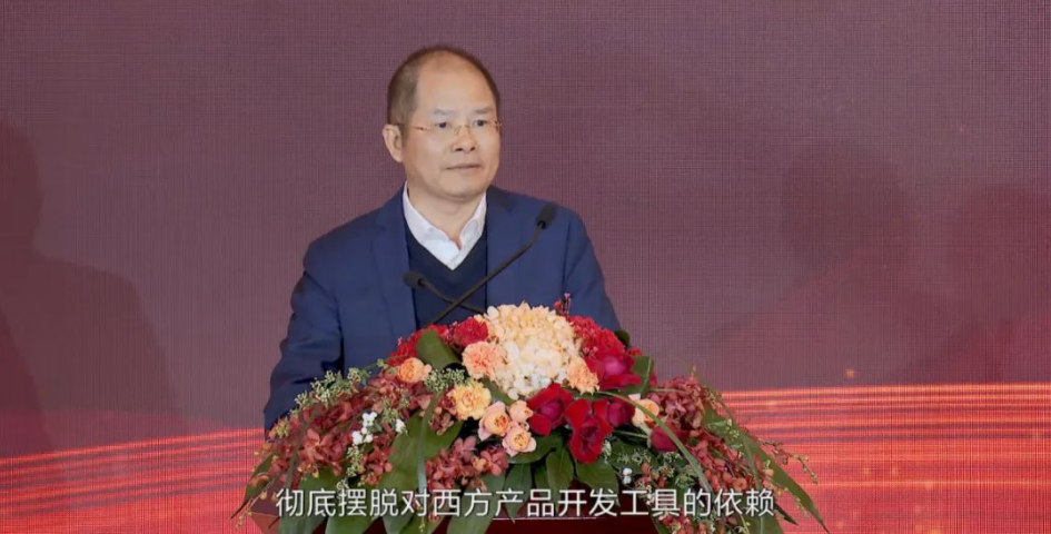 华为副董事长、轮值董事长徐直军在表彰会上表示:“雄关漫道真如铁,而今迈步从头越。打造从沙子、矿石到产品的领先产品研发工具,彻底摆脱对西方产品开发工具的依赖,突破乌江天险,实现战略突围的口号已经吹响,战旗已授予,让我们不辱使命,不负韶华,奋勇前进。”