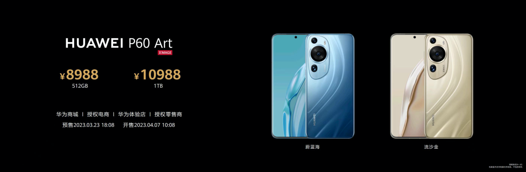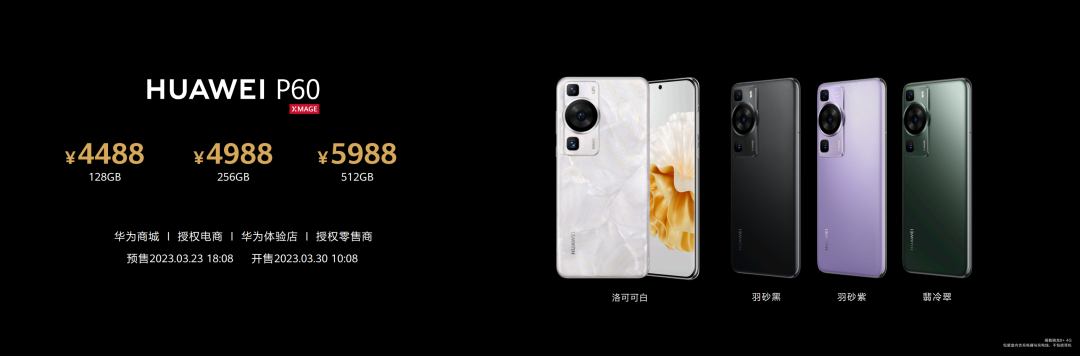华为全新一代影像旗舰华为P60系列,将于2023年3月23日18:08开启预售,3月30日10:08正式开售,华为P60售价4488元起,华为P60 Pro售价6988元起,华为P60 Art售价8988元起。用户可登陆华为商城及各大授权电商平台或前往华为体验店、华为授权零售门店进行购买。