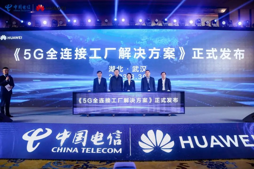 3月30日,中国电信5G全连接工厂发布会在武汉成功举办。湖北省经信厅党组成员、副厅长吕晓华,中国电信集团政企信息服务事业群副总经理曹磊,华为中国运营商BG副总裁徐永波,中国电信集团政企5G定制网创新团队、能源化工团队负责人韩智泉,中国电信湖北公司副总经理张海鹰,中国电信研究院副院长江志峰,天翼物联科技有限公司副总经理张兴生,华为5GtoB解决方案部部长王永德,华为中国5GtoB创新部部长王法,中国信息通信研究院技术与标准研究所副主任张恒升等领导嘉宾出席本次大会。发布会上,中国电信发布系列创新成果,携手产业链共同发布5G全连接工厂解决方案。此次大会由中国电信集团有限公司和华为技术有限公司联合主办。
