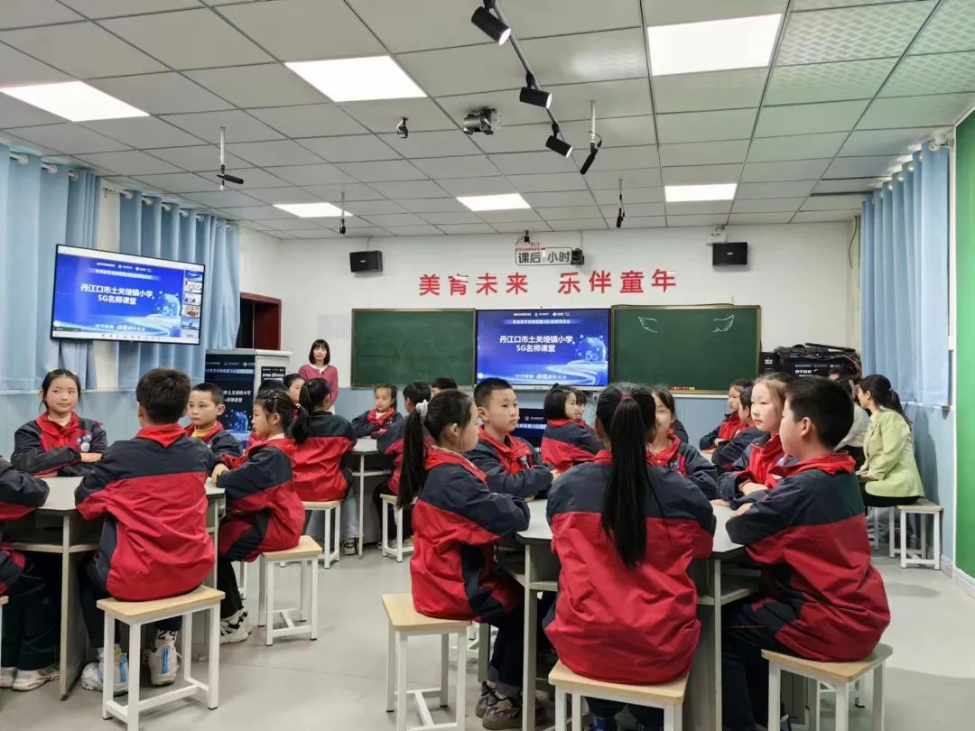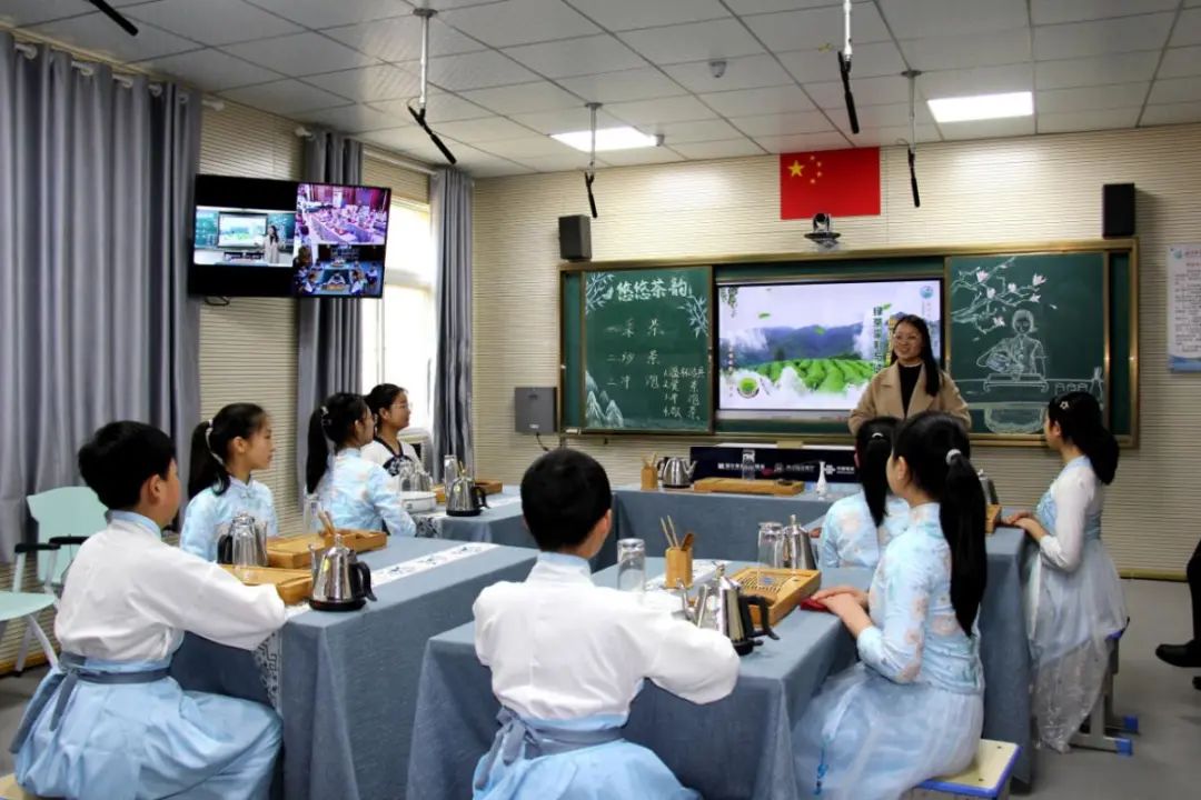 在丹江口市土关垭小学会场的5G+专递课堂上,土关垭镇小学、土关垭汤湾教学点、十堰市柳林小学、武当山茶园劳动现场、制茶车间炒茶现场,在五个地点同上了全国第一堂基于5G移动通信技术应用的“绿茶采制与茶艺”劳动课。课程立足于十堰市“武当山好茶、丹江口好水”资源,借助5G移动通信技术的“高带宽、低时延、高可靠”优势,实现视频轻量化直播、云化导播,让室内室外、线上线下多个地方的学生常态化同上一堂课成为现实。课程立足本地特色茶产业,在春茶上市的时节,把“茶叶的采摘、炒制和茶艺”三个重要环节设计到一堂劳动课中,让学生在一堂课上体验到采茶劳动的艰辛、学习到炒茶技艺的精湛和感受到茶艺文化的深厚。孩子们在亲身实践中,历经“茶农”到“茶艺师”的转型升级,领悟“和、静、怡、真”的文化精髓,“以茶培德,以茶育人”,把弘扬中华传统文化与立德树人、教学改革相结合,在推进乡村振兴中贡献着教育的力量。