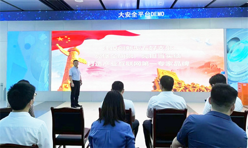 参观体验中心后,联通广东产互东莞办事处党支部书记吕喜峰同志发表活动致辞,介绍了双方现有合作项目的基本情况,并提出期待双方在未来能够充分发挥优势,在创新业务设计、方案、交付等各阶段优势互补,真正让党建"联建共建"成为交流洽谈的“耦合器”,深化交流扩大合作、实现互利共赢发展,产出更高质量合作成果。