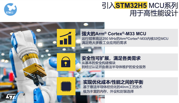 工业需求对STM32来说正在变得越来越强劲,根据预测,在潜在市场上,MCU工业市场份额将从2021年的52%增长到2026年的65%。由于在一些具体行业中的高要求,产品对于性能有着更高阶的需求,产品也要有着在不同环境下的更高可靠性,安全性也不可忽视。于此同时,成本也同样是企业主考虑是否进一步实现工业数字化的考量指标,而芯片也是决定最终部署成本的重点要素之一。