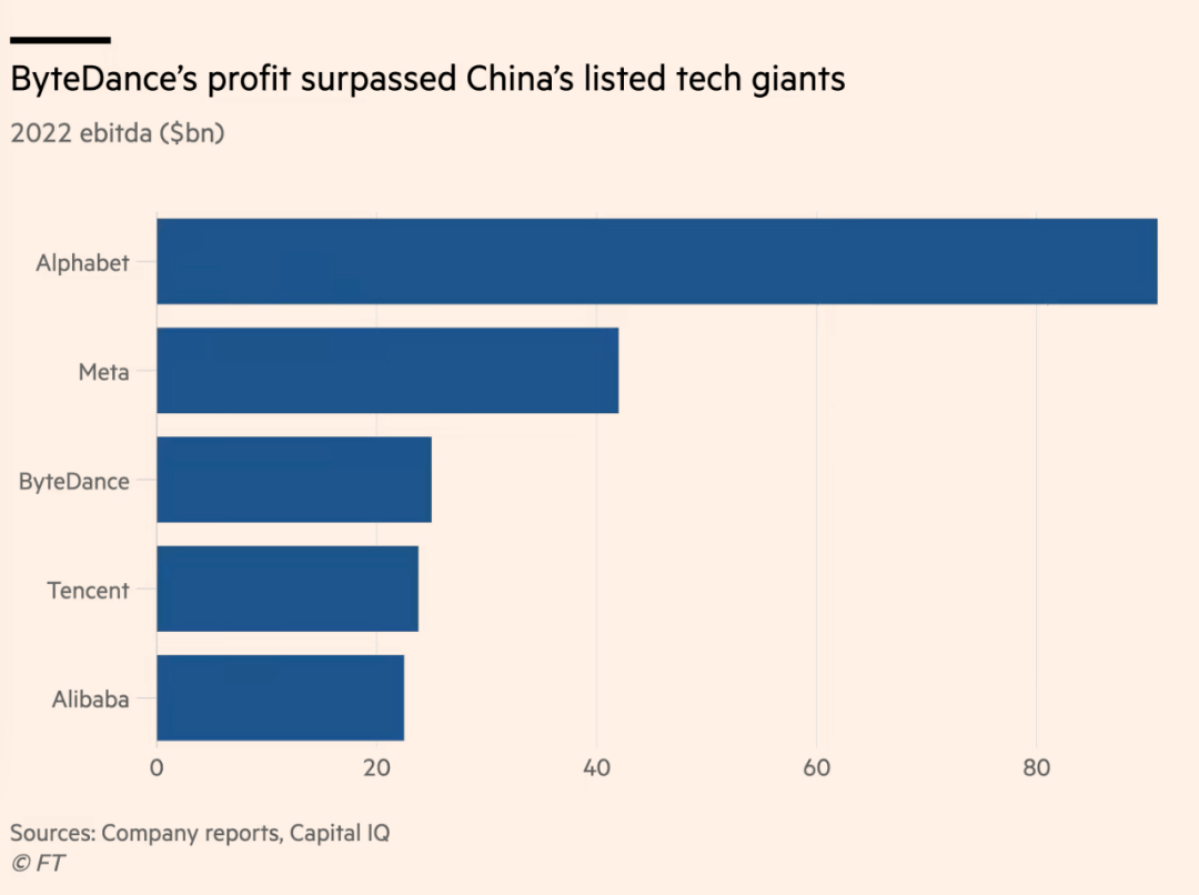 4月10,据外媒援引两名了解相关数据的投资者表示,字节2022年息税前利润250亿美元,2021 年该数字约为140 亿美元,同比飙升79%,已经超越了腾讯和阿里。后者报告的2022 年 EBITDA 分别为239亿美元和225 亿美元。