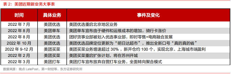 而“苦主”美团,更是动作频频,近期还上线了“美团企业版”,“求生欲”满满。美团也变得更加聚焦――在外卖、闪购、买菜这一条基于即时配送的高频业务上,拓宽护城河;持续亏损的重资产“烧钱”业务,则果断瘦身。