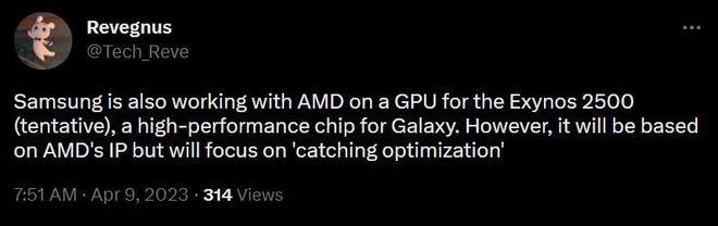 据爆料者 Revegnus透露,三星正在和 AMD 合作为 Exynos 2500 芯片研发 GPU,该 GPU 基于 AMD 技术,而且特别专注于优化。