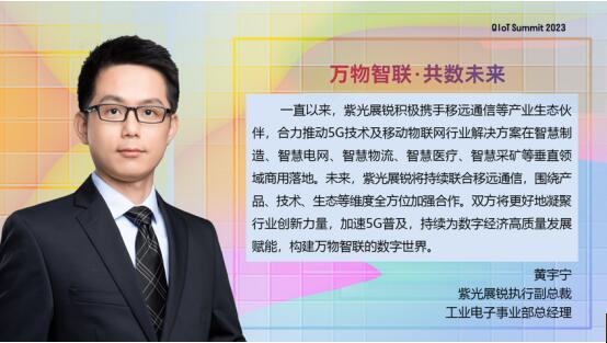紫光展锐执行副总裁、工业电子事业部总经理黄宇宁受邀发表祝贺寄语:“一直以来,紫光展锐积极携手移远通信等产业生态伙伴,合力推动5G技术及移动物联网行业解决方案在智慧制造、智慧电网、智慧物流、智慧医疗、智慧采矿等垂直领域商用落地。未来,紫光展锐将持续联合移远通信,围绕产品、技术、生态等维度全方位加强合作。双方将更好地凝聚行业创新力量,加速5G普及,持续为数字经济高质量发展赋能,构建万物智联的数字世界。“