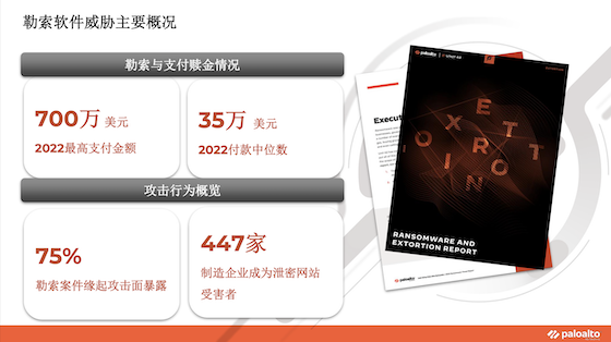 根据派拓网络近期发布的《2023勒索软件威胁报告》显示,澳大利亚、印度、日本、中国台湾、泰国、中国大陆已经成为了亚太地区受到勒索软件攻击数量最多的六个地区。制造业、批发和零售、专业和法律顾问则成为了最容易受到攻击的行业。在报告统计的过去近18个月的1000起案件中,2022年最高赎金支付达到700万美元,勒索金额中位数为65万美元,付款中位数为35万美元。