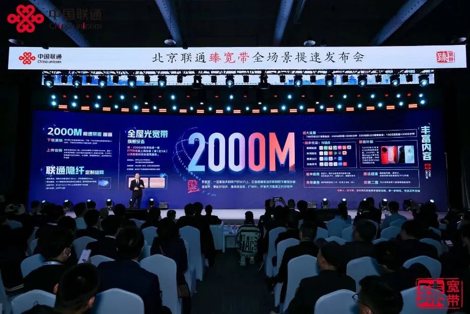 4月23日,以“创速新生 臻·2000M时代”为主题的2023北京联通臻宽带全场景提速发布会在京召开。活动期间,北京联通携手战略合作伙伴华为正式发布“臻·2000M宽带”新品,并邀请科技达人李大锤、2000M首批体验用户作为“2000M体验官”上台进行测速演示和心得分享,让现场嘉宾更直观、更深入、更沉浸地感受到2000M宽带网络给京城百姓生活带来的全新变化。