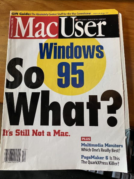 当然,很多苹果的铁粉对Windows 95依旧是一种不屑一顾的态度,MacUser杂志甚至在封面上加了几个大字“Windows 95: So What?”(Windows 95:那又怎样),这或许在一定程度上也能体现出苹果公司对于Windows 95的想法。