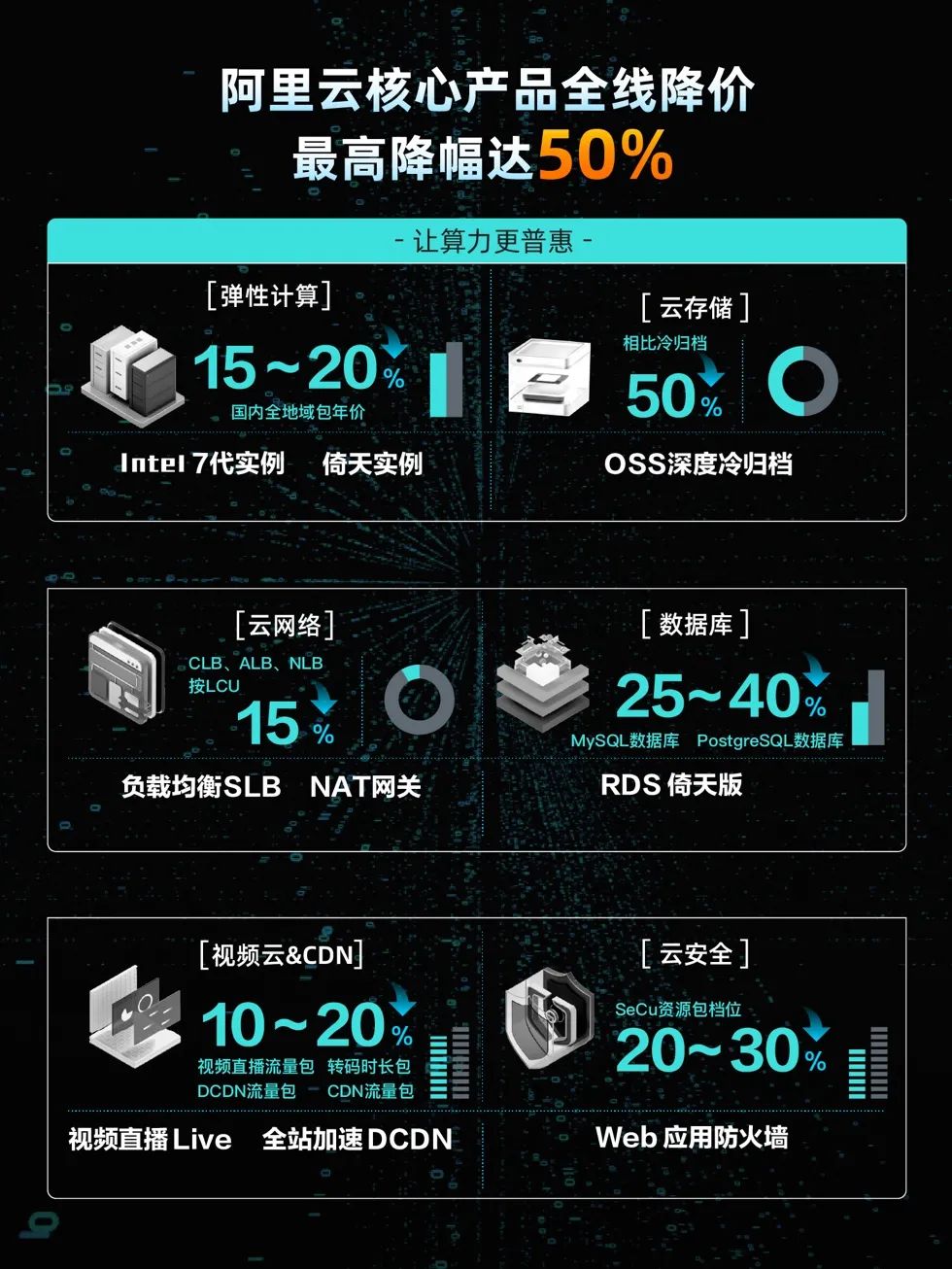 阿里云宣布历史最大规模降价:核心产品最高降幅达50%