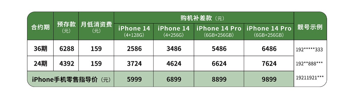 根据此前消息,中国广电 iPhone14 系列手机合约套餐已开启首发预约,以 159 月每月的套餐费来计算,用户预存两年共计 4392 元话费后,可以最低 3724 元的价格入手最低配 iPhone 14;用户预存三年共计 6288 元话费,可以最低 2586 元的价格入手最低配 iPhone 14。