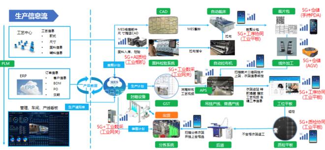 如同师傅在操控木偶时手握多根线丝的双手,5G专网在将不同的数据向上汇总后,还需要对数据实现利用,并反之对具体的环节进行调控。联通以5G专网为驱动,实现移动终端与平台的有效协同。引入MES(制造执行系统)、APS(计划与排程系统)、GST(一般⻋缝时间)、PLM(产品生命周期管理)、WMS(仓库管理系统)、SCM(供应链管理)等多个模块,与企业现有的 ERP(企业资源计划)、EHR(人力资源管理信息化)、OA(办公自动化)、 IPOS(终端零售客户)等系统实现融通,构建了以5G虚拟专网为核心的AI视觉检测、工业数采、仓储管理、硬件和工序协同等多个应用场景,实现企业产供销一体化的有效协同。
