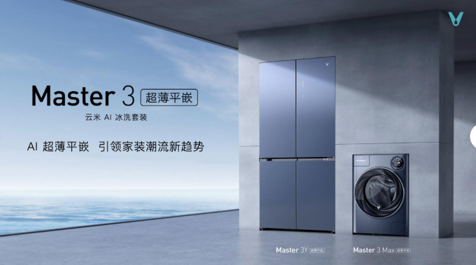 云米新推出的超薄平嵌Master3Y冰箱与主流柜体深度600mm齐平,取消了两侧散热空间,创新采用底部散热,正面看上去和柜体严丝缝合、转角安放不突出,充分利用空间让小厨房也能放得下大冰箱。