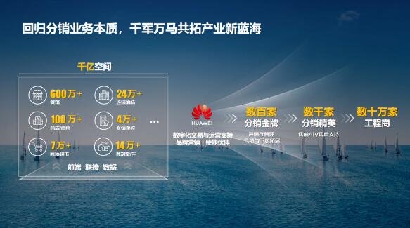 面向这样一个碎片化市场,华为启动了分销业务变革,回归分销业务本质,重构分销交易链条和伙伴体系,发展真正有分销能力的金牌和精英伙伴,筑牢下游伙伴体系,同时牵引分销精英拓展和服务更多的工程商,扩大市场覆盖。