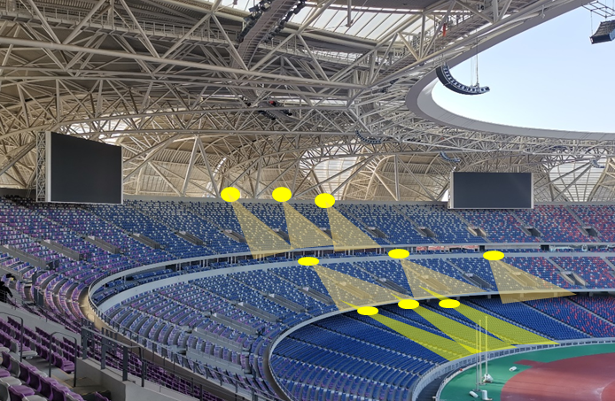 体育场馆观众席的大话务场景一直是通讯保障难点,尤其是中央区域更是以往活动保障的用户体验“重灾区”。本次通讯保障创新地提出了“看台区域2.6GHz和4.9GHz Lampsite赋形天线+中央场地漏缆+智能运维技术”,很好地解决了看台与中心场地间的强干扰问题。