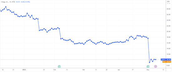 关注美股的投资者,这段日子应该已经听说过Chegg暴跌的事情了。在ChatGPT冒头之前,美国的学生经常上Chegg搜索课堂作业的答案和解法,但这部分的功能与ChatGPT几乎完全撞车。在上周最新季报发布时承认“收入受ChatGPT影响”后,Chegg股价的年内跌幅已经接近60%。