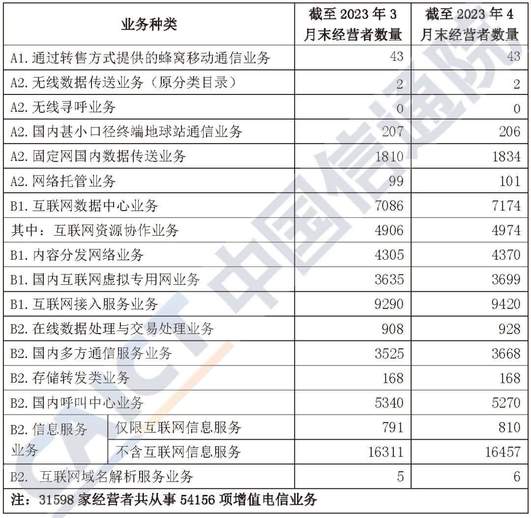 表1 截至2023年4月末跨地区各类增值电信业务经营者数量