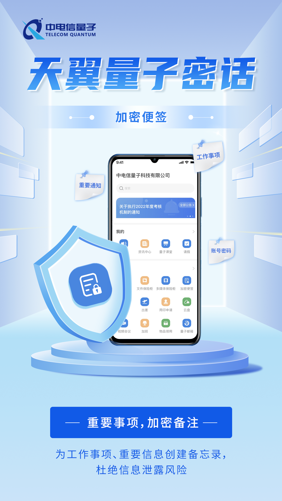 中国电信天翼量子密话宣布新增三项功能:文件保险柜、多媒体保险柜、加密便签。
