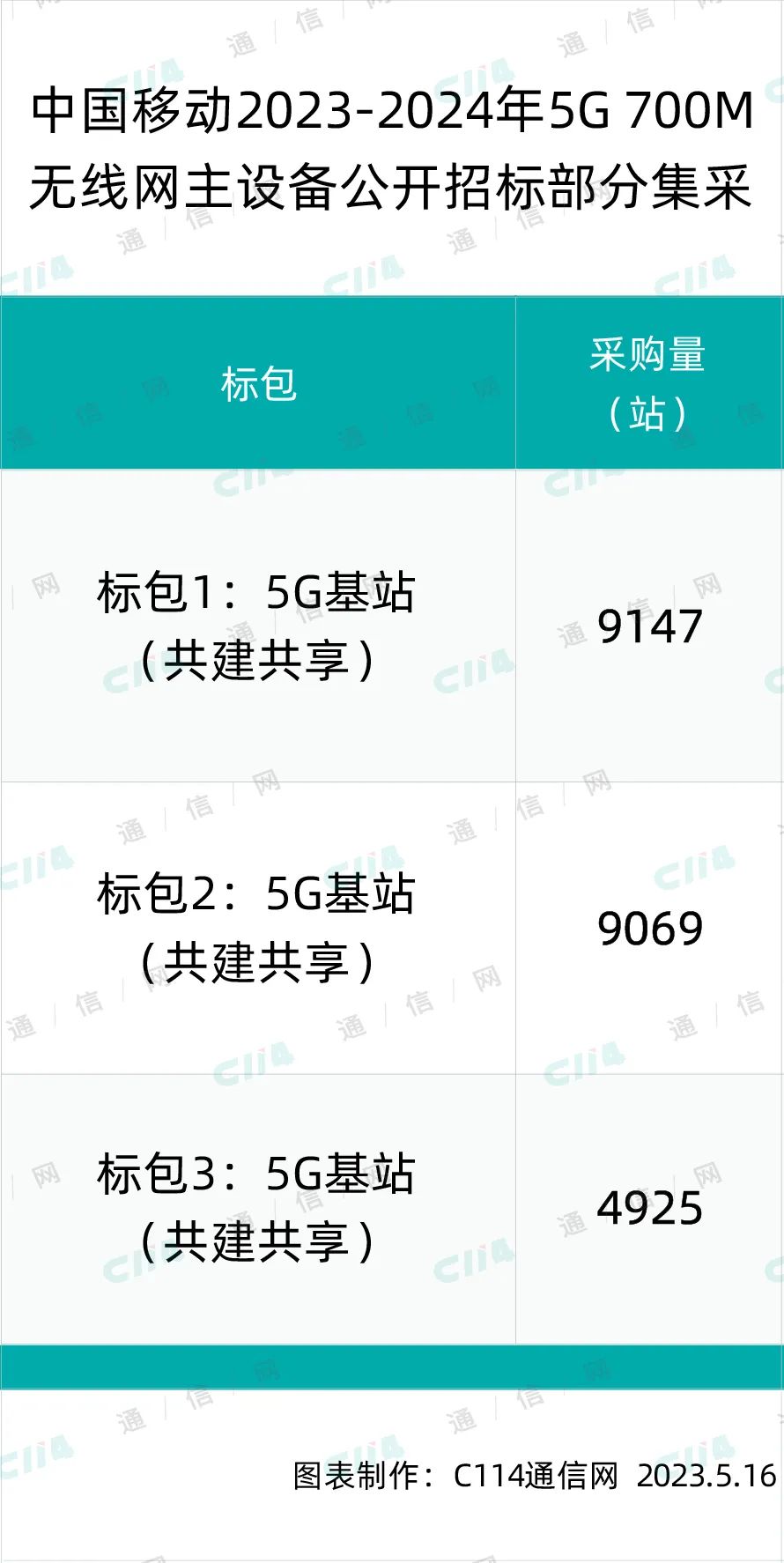 C114讯 5月16日消息(焦焦)从中国移动官网获悉,中国移动昨日晚间分别发布两则公告称,启动2023年至2024年5G无线主设备2.6GHz/4.9GHz 5G基站以及5G 700MHz宏基站公开招标部分集中采购。
