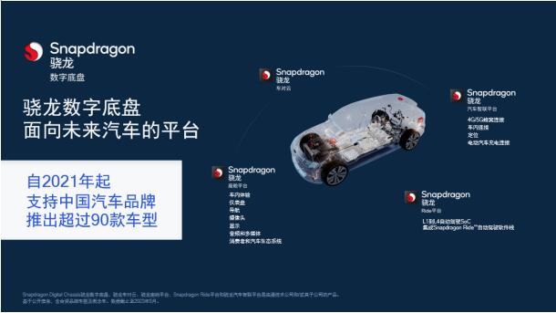 以5G和AI为代表的先进技术,也正在为汽车行业注入新动力。为了加速实现智能网联汽车的未来,我们打造了骁龙数字底盘,涵盖汽车连接、座舱、智能驾驶、车对云四大领域,帮助汽车厂商打造全新服务和应用。凭借强大性能和众多创新,骁龙数字底盘获得了合作伙伴的青睐和消费者的认可。自2021年起,骁龙数字底盘支持中国汽车品牌推出了超过90款车型。