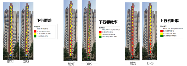 而分布式微站方案中,母端通过小信号拉远至子端放大消除拉远馈损,在覆盖相当的情况下功耗更低,响应国家“低碳”号召;同时,子端有源可管控,无需上站巡检,提高可视运维效率。本次试点应用在苏州市吴中区某高层居民小区进行,通过在居民楼同点位部署DRS方案与传统RRU+射灯方案对比。验证结果显示:相比于传统RRU+射灯方案,覆盖增强2.5dB,下行体验速率提升52.1%,上行体验速率提升165.5%,整体覆盖和体验均优于RRU+射灯方案。DRS方案是提升居民区深度覆盖的先进解决方案。