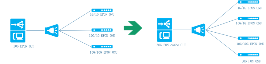 图二 EPON网络向50G PON平滑演进