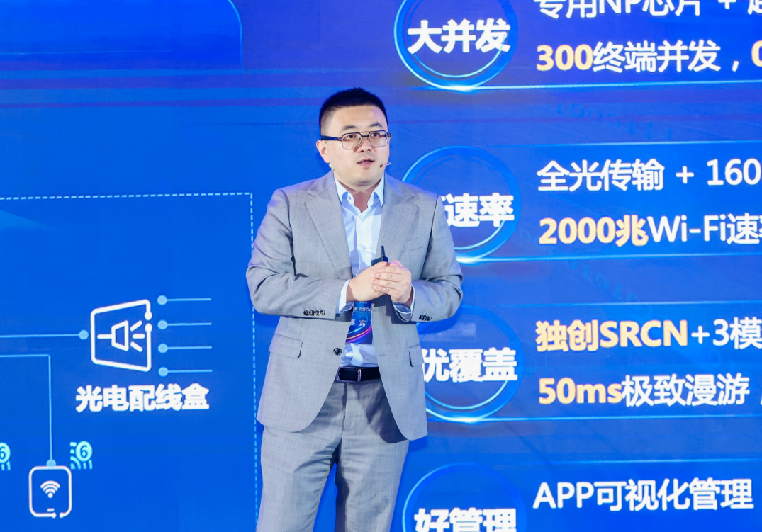 发布会现场,中国500强企业山东潍坊鲁丽集团宣传处处长郭伟作为嘉宾客户,分享了全光e企组网助力山东鲁丽集团数字化转型的实践经验。他表示,站在现代企业智能化、数字化转型的浪潮中,无线协同办公、自动化数字车间打造等新场景、新应用对网络的质量和稳定性提出了更高挑战和要求。山东移动潍坊分公司推出全光e企组网服务,采用华为FTTR-B产品,全光纤改造升级,彻底解决了Wi-Fi上网慢的问题,同时提供了专业的数字化运维,通过运维APP实时监控网络状态,一键Wi-Fi调优,生产系统实时管控稳定在线。中国移动FTTR全光e企组网助力鲁丽集团打造领先行业的“数字化车间”,实现高效办公和高效生产。