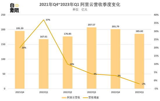 但盈利的背后,难掩营收增速下滑甚至回落的事实。该季度,在抵消跨分部交易的影响前,云业务分部总收入为 245.59 亿元,同比下降 3%,云业务分部收入为 185.82 亿元,同比下降 2%。