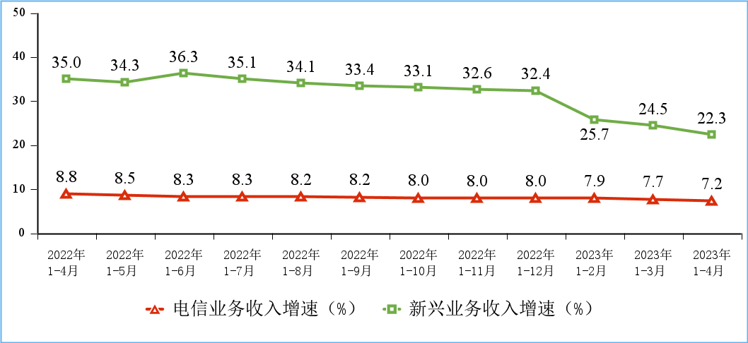 1―4月电信业务收入、总量同比分别增长7.2%和17.6%