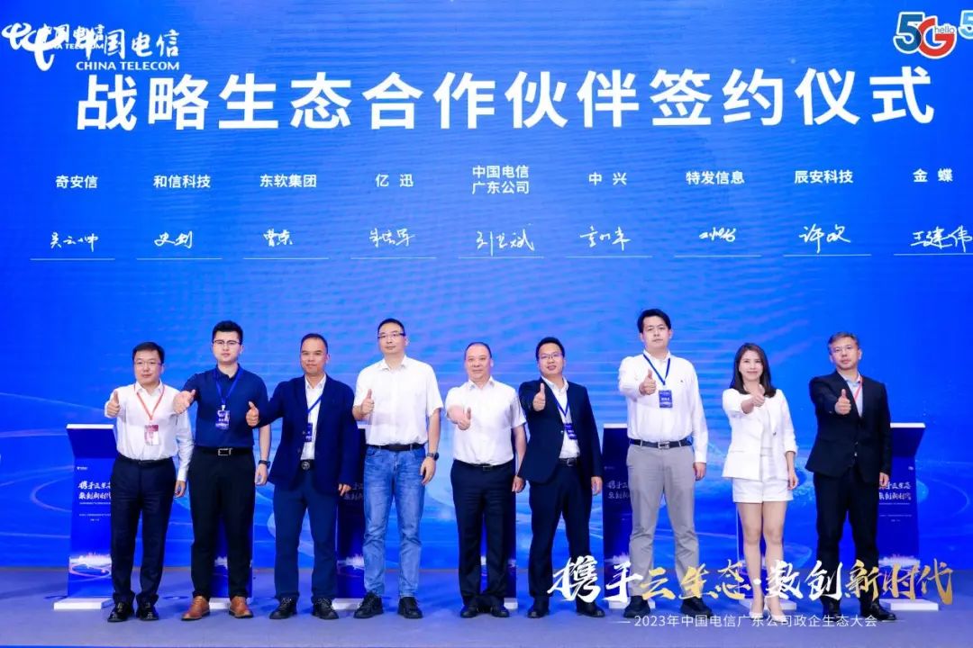 广东电信总经理崔占伟、副总经理唐方、副总经理王湘江、副总经理李进、中兴通讯副总裁兼广东分公司总经理吴昊等领导出席大会,一同见证了中兴通讯与广东电信战略生态合作伙伴的签约,同时中兴通讯获颁“中国电信广东公司生态合作磐石奖”。